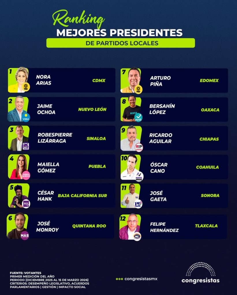 El estudio se construyó, explican, con criterios de desempeño, cercanía con militantes, gestión e impacto social, para dimensionar el posicionamiento actual de los liderazgos partidistas en el ámbito local. En todos estos atributos Nora Arias, también coordinadora del PRD en el Congreso capitalino, fue la mejor calificada. Pero en particular, le reconocieron otras virtudes: la defensa de los derechos ciudadanos; la cohesión partidista y una agenda legislativa centrada en el impacto social directo. Además del trabajo local de prácticamente reconstruir al PRD CDMX después de que las autoridades electorales la reconfirmaron como su presidenta, Nora Arias trabaja junto con ocho presidentes del PRD en entidades federativas para conformar una estrategia nacional que les permita buenos resultados en 2027 y con ello recuperar el registro nacional del partido.